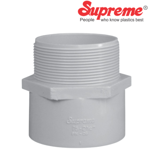 The Supreme PVC Male Threaded Adaptor (MTA) is a critical component for modern piping systems, engineered by Supreme Industries, a leader in plastic piping solutions. This adaptor is specifically designed to facilitate a secure, threaded connection between a plain-ended PVC pipe and a female-threaded valve, pump, or metal fitting.